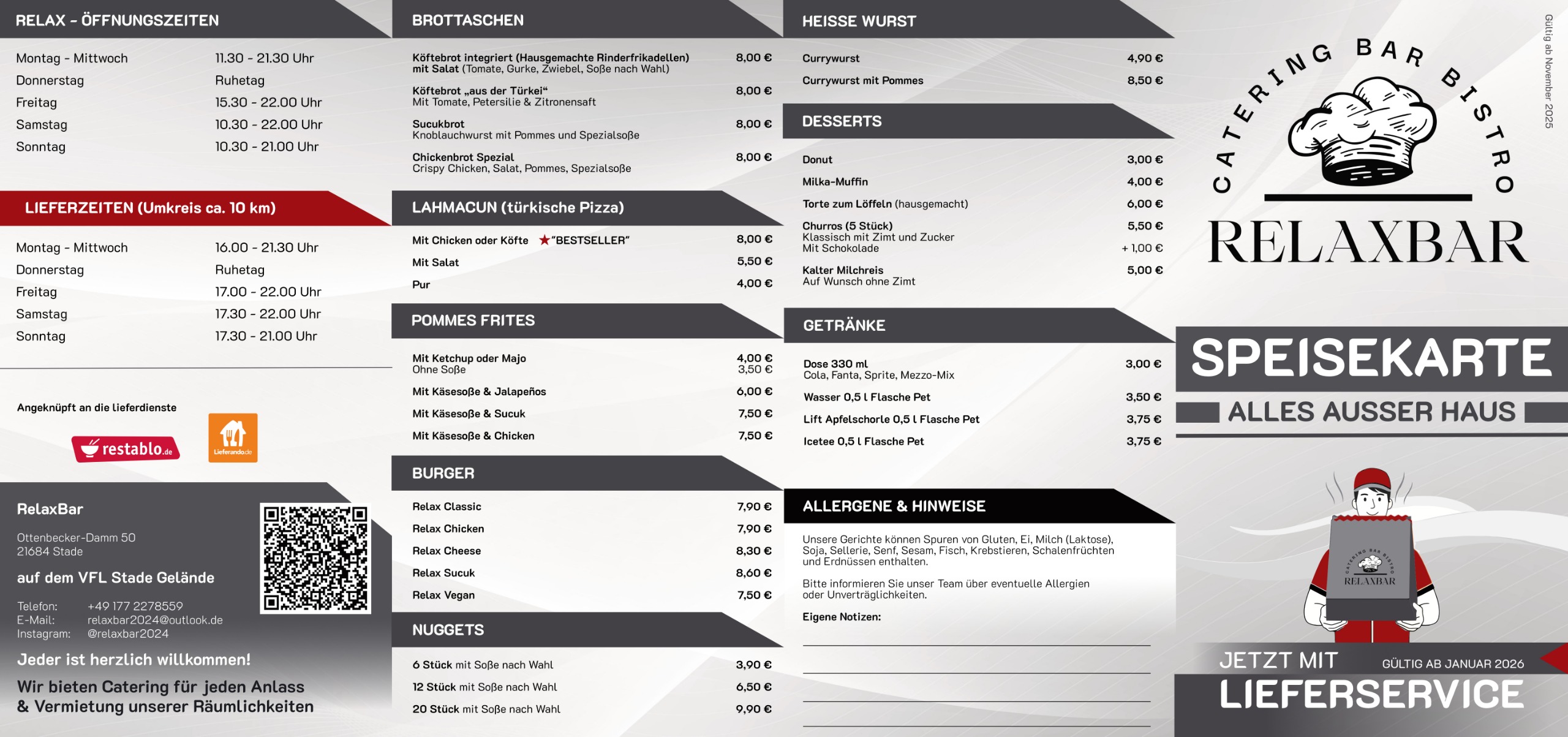 Darüber hinaus präsentiert die Relax-Bar ihre neue Speisekarte mit einer vielfältigen Auswahl: