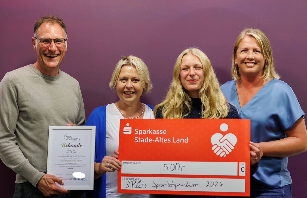 23.09.24 – Die Sparkasse Stade-Altes Land, der Kreissportbund und das TAGEBLATT haben das Sportstipendium 2024 vergeben. Für die Gewinnerin kommt die Finanzspritze gerade recht.