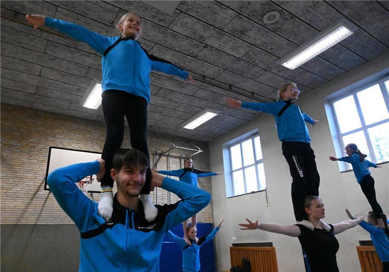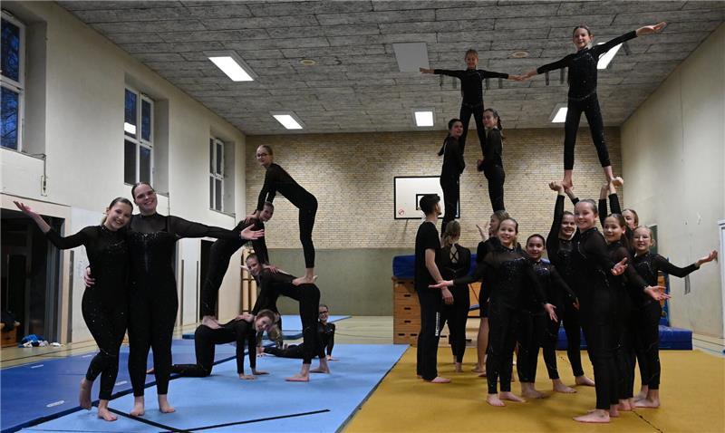 Die Akrobatik ist eine Mädchendomäne. Im Jahr 2022 zählte der Deutsche Sportakrobatik-Bund 11.600 Mitglieder, der Großteil davon weiblich und unter 18 Jahre alt. Das zeigt sich auch in der Sporthalle am Burggraben: Die meisten Mädchen sind 12 oder 13 Jahre alt.