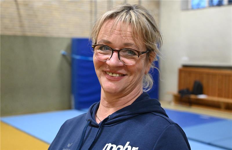 Trainerin Johanna Zuber sitzt auf einer Bank und gibt Anweisungen. Zuber war einst polnische Junioren-Vizemeisterin und brachte die Akrobatik vor 25 Jahren zum VfL Stade.