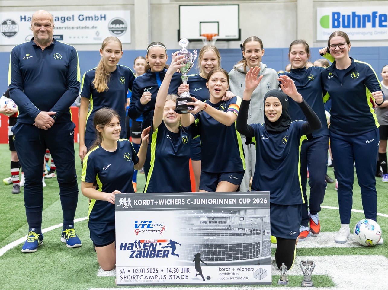 14.01.26 – Die C-Juniorinnen mussten beim Stader Hallenzauber improvisieren. Ein Überflieger war auf dem Kunstrasen nicht zu stoppen, musste danach aber in den Kriechmodus schalten.