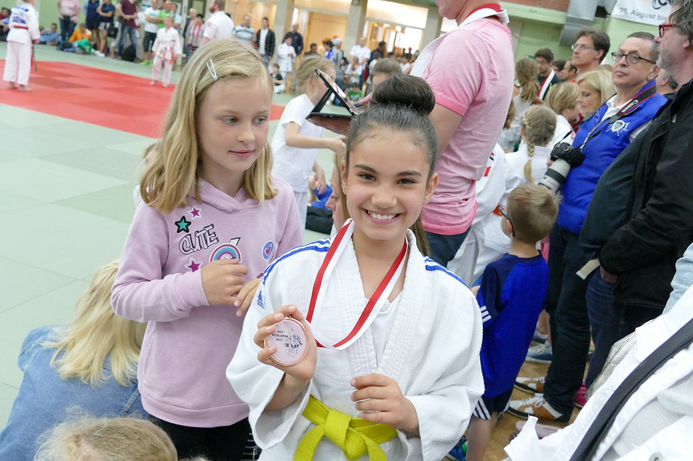 Nikita Ender in der Gewichtsklasse bis 38,0 kg und Yasemin Sari bis 30,0 kg begannen auf ihrem ersten Turnier dieser Größenklasse zunächst nervös. Während sich Nikita nach zwei gewonnen Kämpfen mit Platz 7 glücklich schätzte, erreichte Yasemin über den langen Weg der Trostrunde das Finale um Platz 3, welches sie mit einem lupenreinen Hüftwurf „Marote Seoi Nage Ippon“ gewann.
