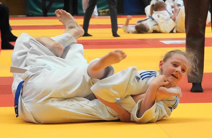 Salima Hahn und Frida Husong starteten erstmals auf einer Landesmeisterschaft. Frida, die erst kürzlich in die Gewichtsklasse bis 40,0 kg wechselte, gewann als Jahrgangsjüngste ihren ersten Einzelkampf mit variablen Techniken und belegte am Ende einen beachtlichen 6. Platz. Besonders erfreut zeigte sich Trainer Egon Krien über die tolle Wettkampfeinstellung von Salima Hahn. „Ein Mädchen mit einer super Moral“, so Krien.