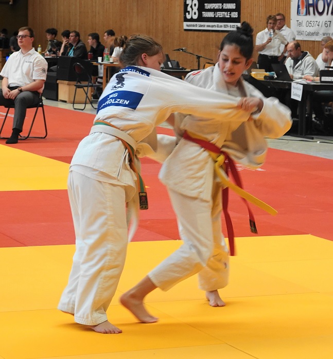 Bente Zöllner holte in der Gewichtsklasse bis 44,0 kg die Bronzemedaille. Nach ihrer Auftaktniederlage in der Vorrunde gegen die spätere Landesmeisterin Lara Pfeiffer aus Braunschweig stand Bente gehörig unter Zugzwang. Unbeeindruckt hiervon bezwang sie im 2. Kampf Tanja Schröder aus Diekholzen mit einem blitzschnellen Stand-Boden Übergang und ihrer anschließenden Spezialumdrehtechnik Sankaku. Nach ihrem Sieg gegen Sarah Peters aus Visbek für zwei Waza ari Wertungen ging es im abschließenden Vorrundenkampf gegen Amalia Ammem vom FC Rastede um den Einzug in das Halbfinale. Mit guten Aktionen im Bodenkampf gewann Bente diesen letzten Vorrundenkampf und sicherte sich damit das Ticket für die Norddeutsche Einzelmeisterschaft.