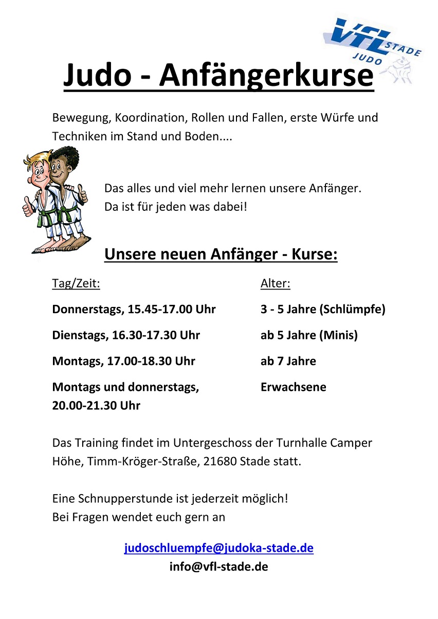 30.01.20 – Unsere Judo-Abteilung bietet neue Anfängerkurse an, kommt vorbei und macht ein Probetraining. Die Judokas freuen sich auf zahlreiche neue Anfänger. Klickt auf Weiterlesen für mehr Informationen.
