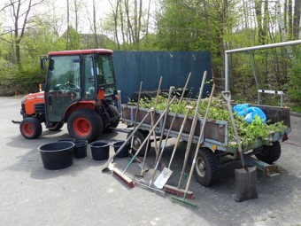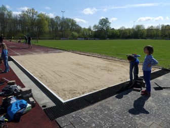 Athleten und Trainer wirbelten in den Geräteräumen. 5 Garagen galt es von innen und außen auf Vordermann zu bringen. Mit seiner kleinen signalroten Schubkarre kurvte Helfer Theo (5 Jahre) gekonnt zwischen den fleißigen Eltern und Nachwuchsathleten auf der Tribüne herum und sammelte das mühselig aus den Ritzen entfernte Kraut ein. Unterdessen bewiesen einige 11- und 12-jährige Sportler, dass nicht nur ihre sportlichen Leistungen beachtenswert sind. Die Weitsprunganlagen, am Ende glatt und eben, wurden eifrig unter Anleitung von Martin Plack präpariert.