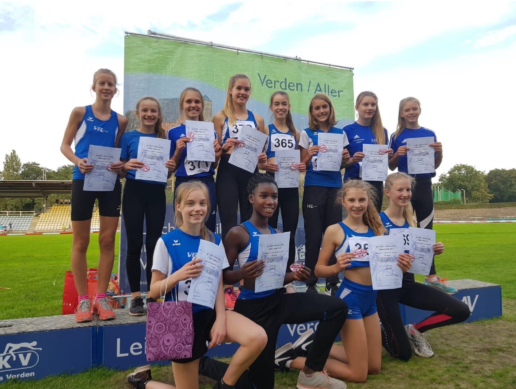 Spannung und Emotionen erlebten die 14 VfL-Mädchen, denn zunächst konnte das Team der Startgemeinschaft „Lingen-Meppen“ dank guter Sprinterinnen, Kugelstoßerinnen und vor allem dank sehr guter Mittelstrecklerinnen noch halbwegs mithalten. Mit zunehmender Wettkampfdauer aber wurde klar, dass der VfL Stade seiner Favoritenrolle gerecht werden würde, zumal die Mädchen zum Saisonende noch mal richtig gut drauf waren. Es gab persönliche Bestleistungen am laufenden Band, wobei die beiden Ältesten, Laura Miller und Lena Hagenah, mit gutem Beispiel vorangingen.