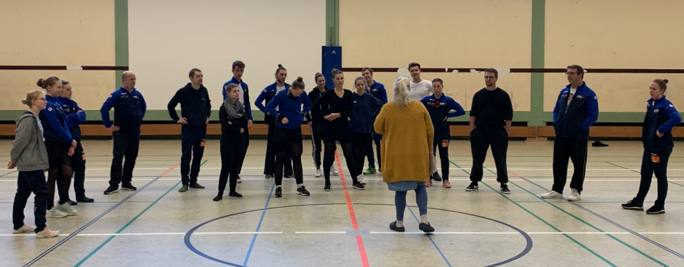 Ela legte dann auch direkt los und begann mit tollen kleinen Übungen, um die Stimmung zu lockern. Insgesamt wurden über drei Stunden fleißig geübt und viele Tänzerinnen und Tänzer kamen aus sich heraus. Alle aus der Mannschaft waren sehr offen und haben sich auf dieses ungewöhnliche Training eingelassen.