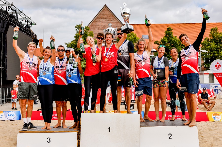Im Finale der Frauen trafen Deepen/Tefs auf Miroslava Liskova und Marion Stein (Vallstedt Vechelde Vikings), denen sie in ihrem ersten Spiel am Samstag, 27.08., mit 1:2 (21:9, 16:21, 7:15) unterlegen waren. Auch das Match um Gold zwischen beiden Teams ging nach je einem Satzgewinn für beide Teams in den entscheidenden Tiebreak. Nach spektakulären Ballwechseln entschieden Deepen/Tefs diesen denkbar knapp mit 16:14 für sich. Bronze ging an Bernice Andoh und Alina Hellmich (TV Eiche Horn Bremen/SV Bad Laer), die sich im Spiel um Platz drei mit 2:0 (21:17, 21:12) gegen Lea Gregor/Julika Hoffmann (Turn-Klubb zu Hannover/SF Aligse) durchsetzen.