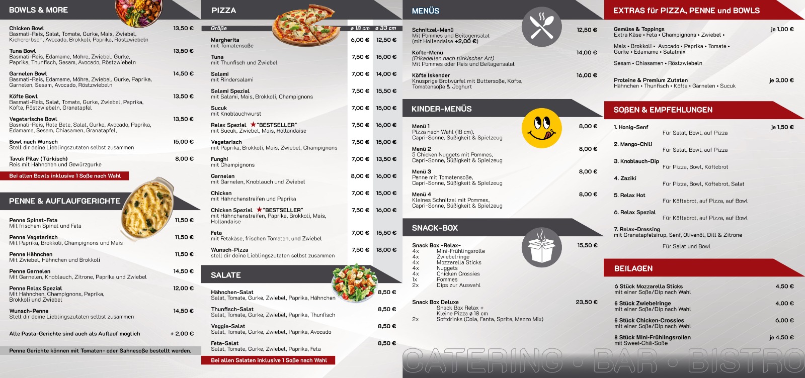 Darüber hinaus präsentiert die Relax-Bar ihre neue Speisekarte mit einer vielfältigen Auswahl: