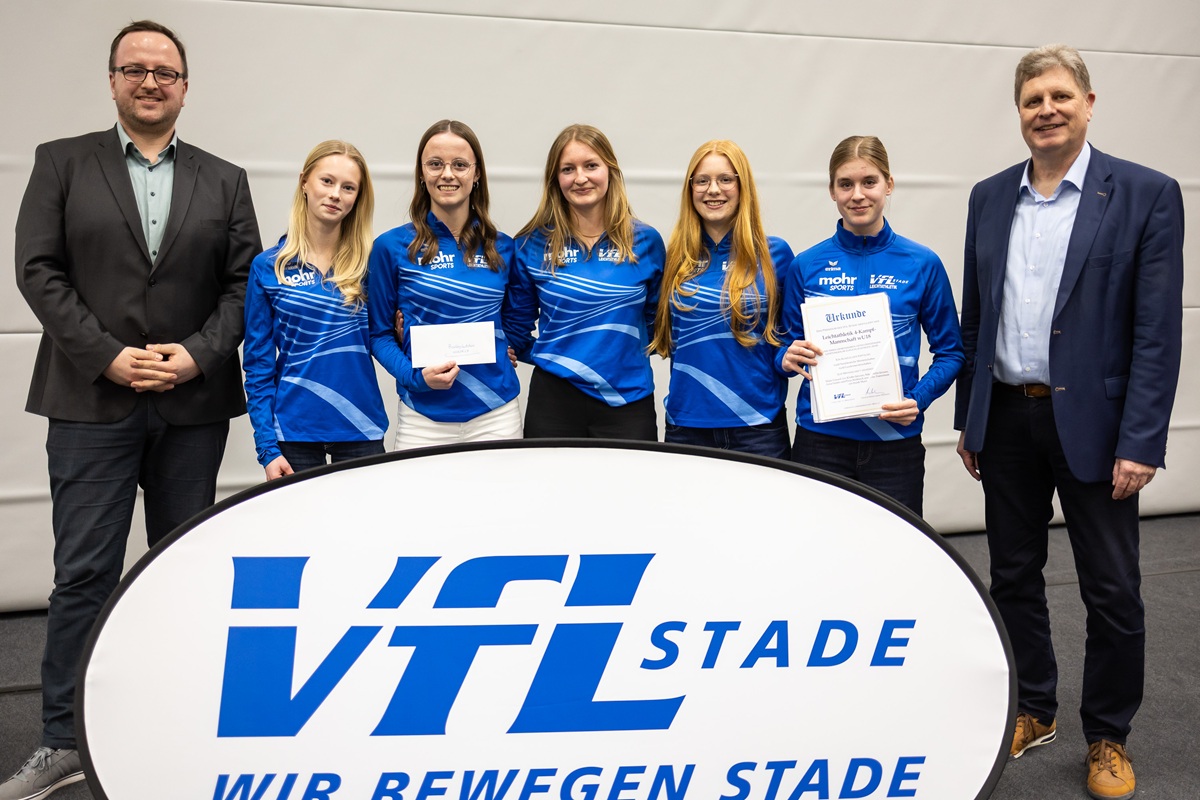 Für ihre überragenden Leistungen in der Leichtathletik der Altersklassen wU16/wU18 wird das Team mit der silbernen Leistungsnadel ausgezeichnet. Auf Meisterschaftsebene überzeugte sie mit mehreren Top-Platzierungen, darunter Titelgewinne bei den Norddeutschen sowie den Landesmeisterschaften im Vierkampf der U18 sowie weitere Podestplätze in den Mehrkampfdisziplinen der U16. Auch in den Bestenlisten des NLV spiegelt sich ihre Konstanz mit mehreren ersten Plätzen wieder.