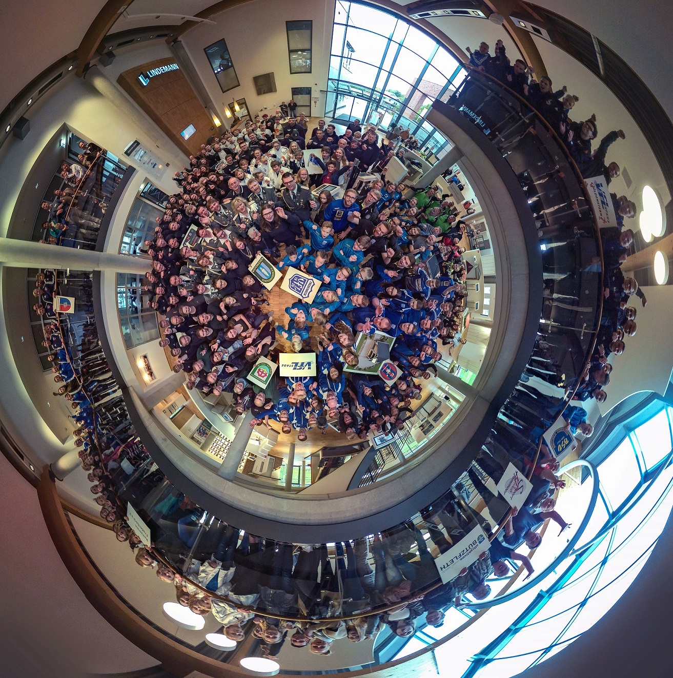 Für das Foto, welches wie ein Planet das große Engagement von Lindemann aufzeigt, stellten sich die Mannschaften - ausgestattet mit Ihren Logos - in die beiden Etagen des Bau-ErlebnisHauses. Der Einsatz der Mannschaften war hierbei nicht zu verachten – so kam der Schützenverein in Uniform, die Judoka in ihren Judogi, die Fuß- und Handballer in ihren Trainingsanzügen - und vom Segel- über den Angelverein waren alle Besucher motiviert diesen Tag zu feiern.