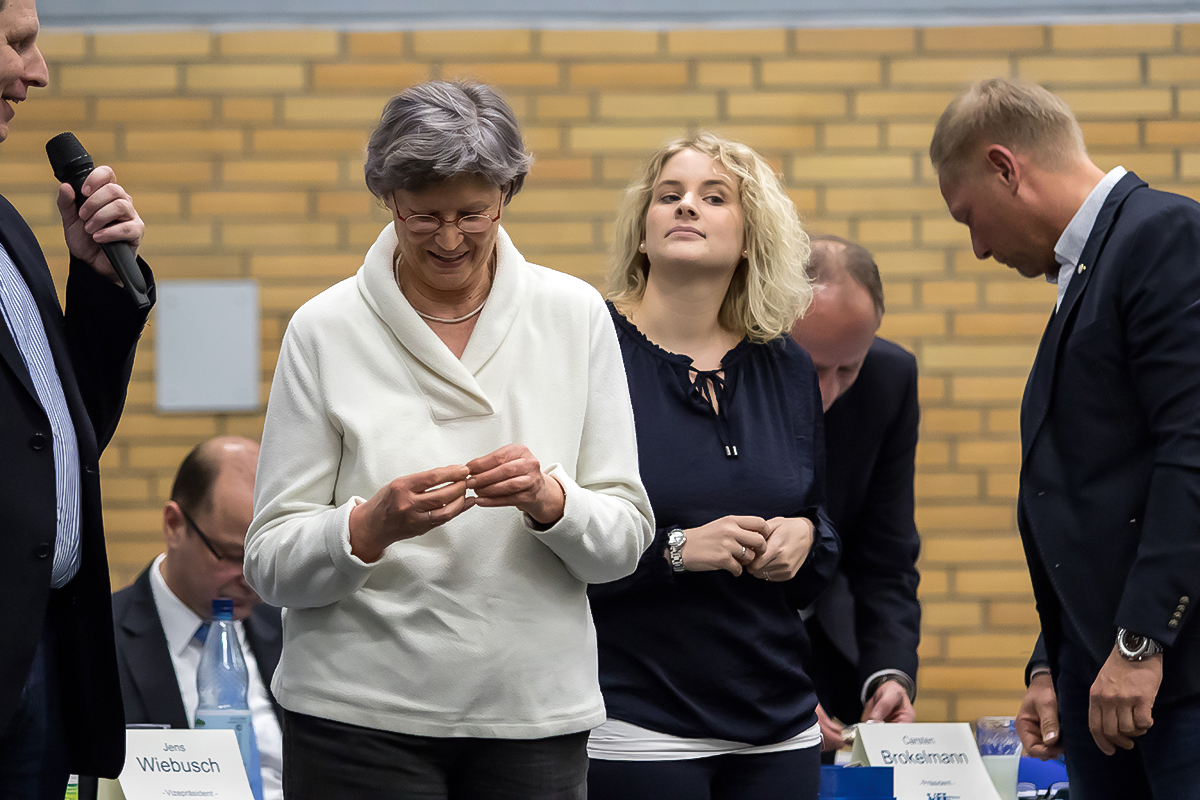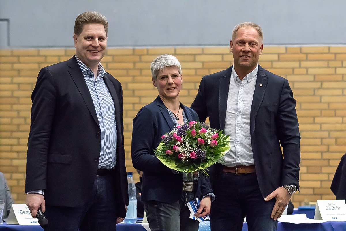 Weiter ging es mit den Ehrenamtlichen, die sich über viele Jahre um den VfL Stade verdient gemacht haben. Zuerst war Fußballerin Doris Damman an der Reihe. Ihr Name ist untrennbar mit dem Frauenfußball unseres Vereins verbunden. Doris Dammann wurde die Verdienstnadel verliehen.