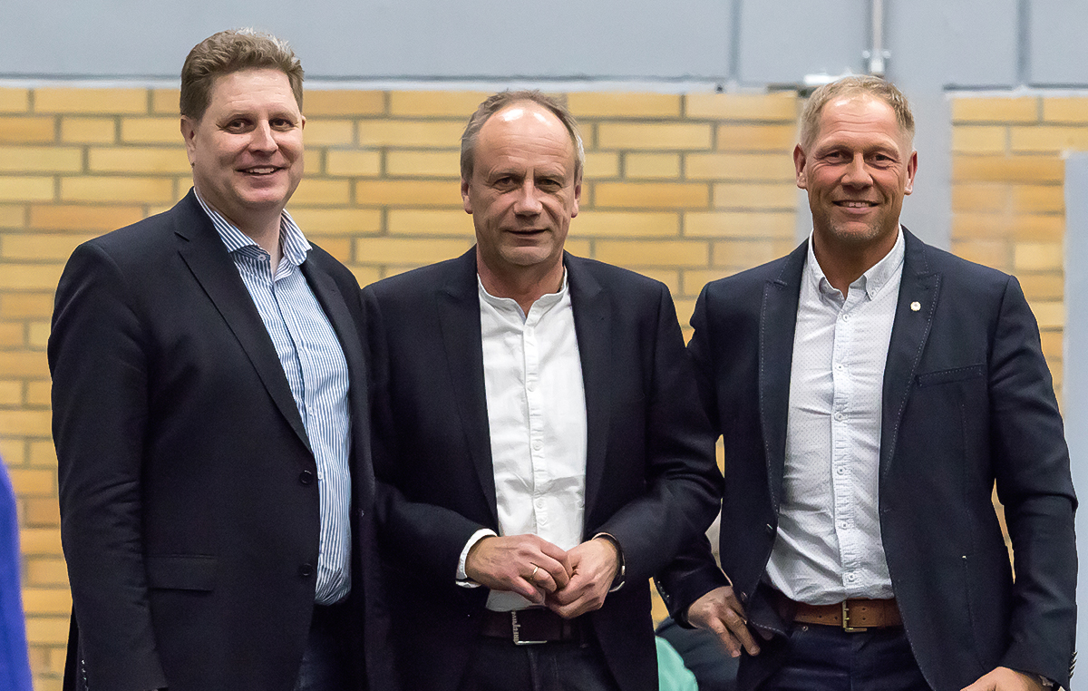Sven Klette (Mitte) wurde für seine unzähligen ehrenamtlichen Funktionen, die er seit 2004 für die Handballabteilung ausübt, mit der Verdienstnadel ausgezeichnet. Seit diesem Jahr ist Sven Klette Abteilungsleiter Handball.