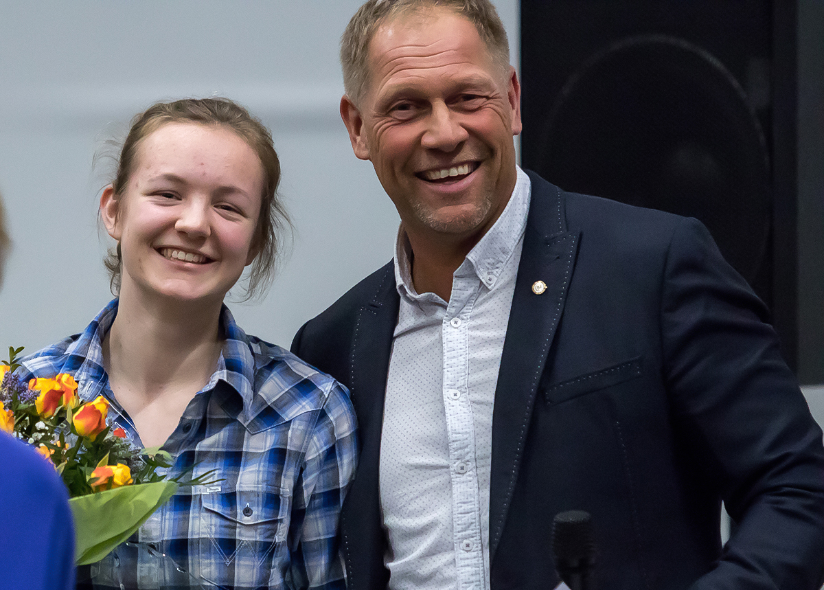 Die junge Rollkunstläuferin Kaya Isabel Helck und ihr älterer Kollege Marc Brokelmann wurden für ihre sportlichen Erfolge im Jahr 2017 geehrt. Kaya wurde Landesvizemeisterin in Pflicht, Kür und Kombination, holte den 7. Platz auf dem deutschen Pflichtpokal und wurde neben dem Landeskader auch in den Perspektivkader des Deutschen Roll- und Inlineverbandes berufen. Marc Brokelmann feierte zahlreiche Erfolge auf Landesebende (dreifacher Meister in Pflicht, Kür und Kombination, Kürpokalsieger), aber auch national und international konnte er z.B. mit Platz 2 auf den norddeutschen Meisterschaften und Platz 4 bei der Europameisterschaft auf sich aufmerksam machen. Beiden wurde für herausragende sportliche Leistungen bereits die Leistungsnadel verliehen.