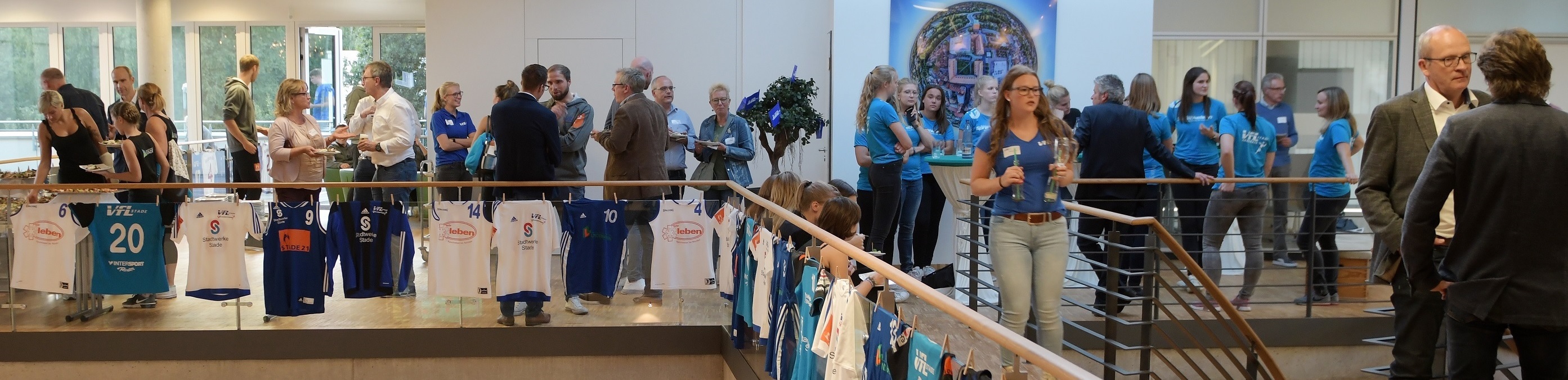 20.09.18 – Am vergangenen Donnerstag luden der VfL Stade und seine drei großen Leistungsmannschaften aus Handball, Fußball und Basketball zur offiziellen Mannschaftsvorstellung in das BauErlebnisHaus der LINDEMANN-Gruppe. Sponsoren, Sportlerinnen und Sportler sowie Trainer und Vereinsfunktionäre erlebten einen rundum gelungenen Abend in blau-weiß.