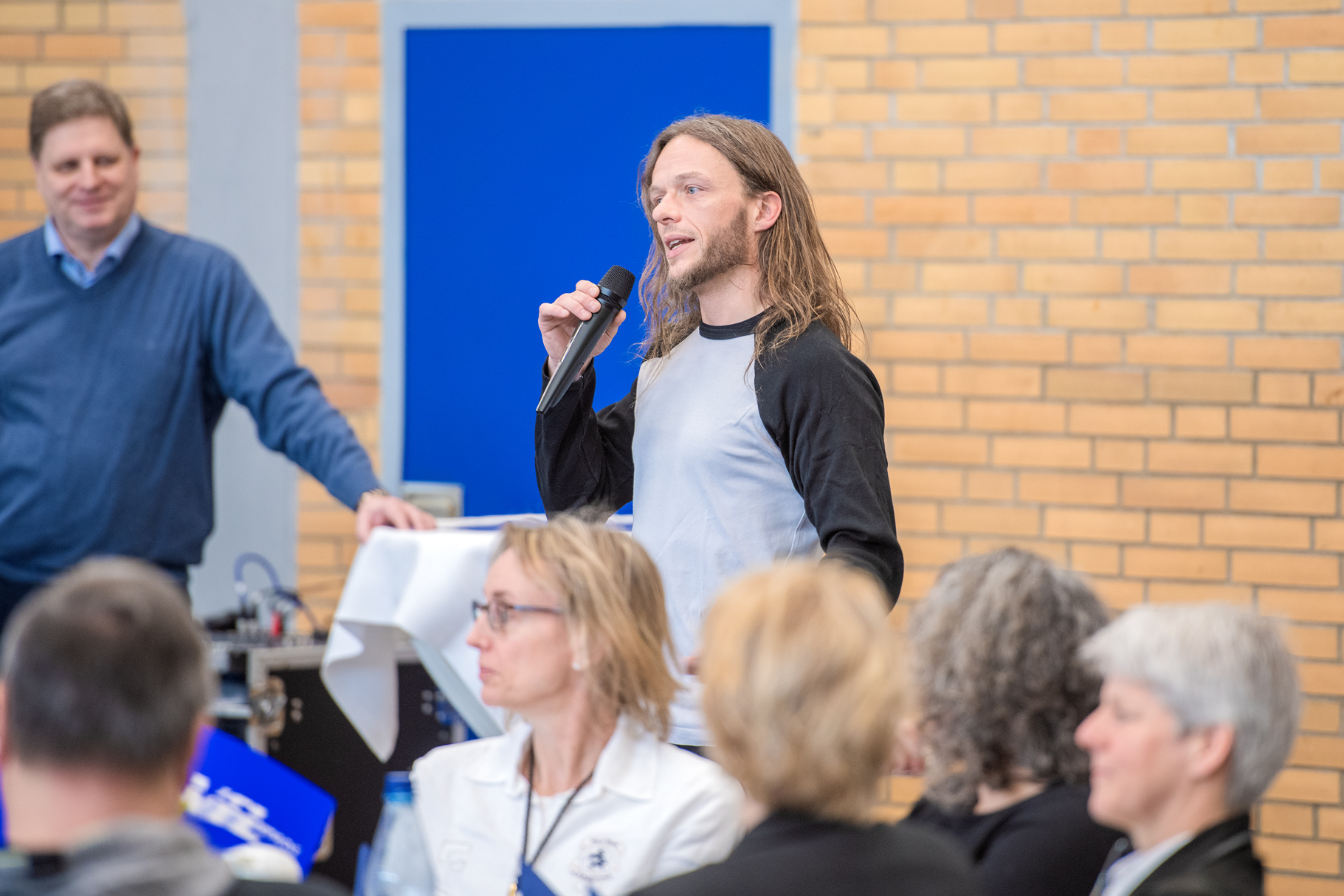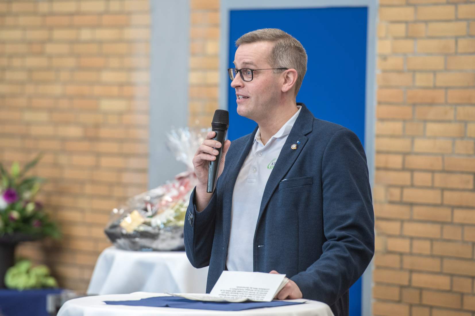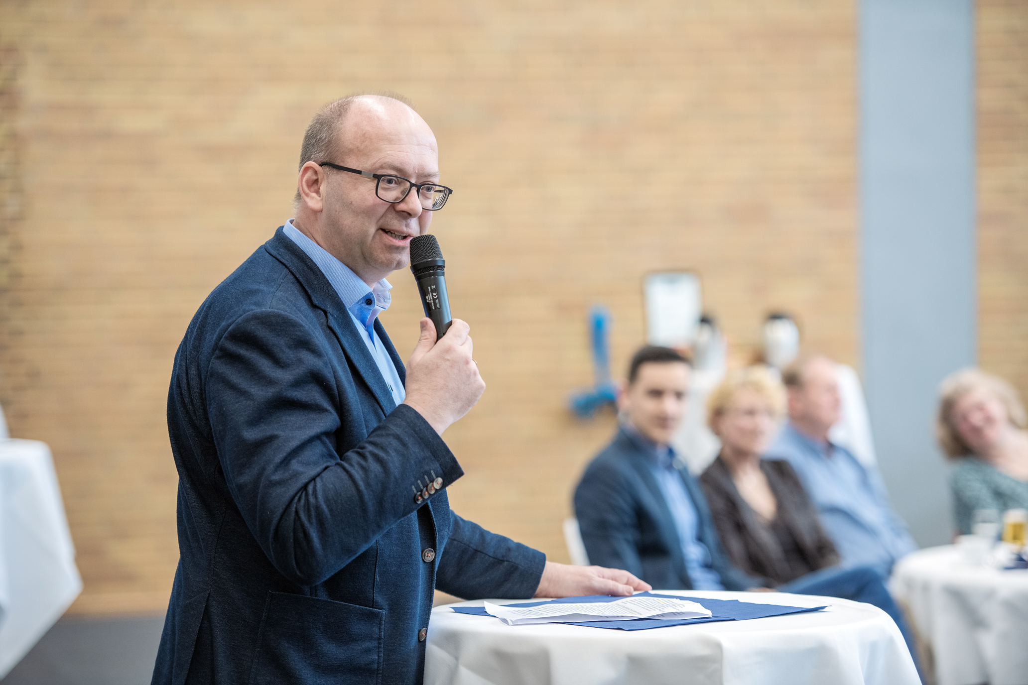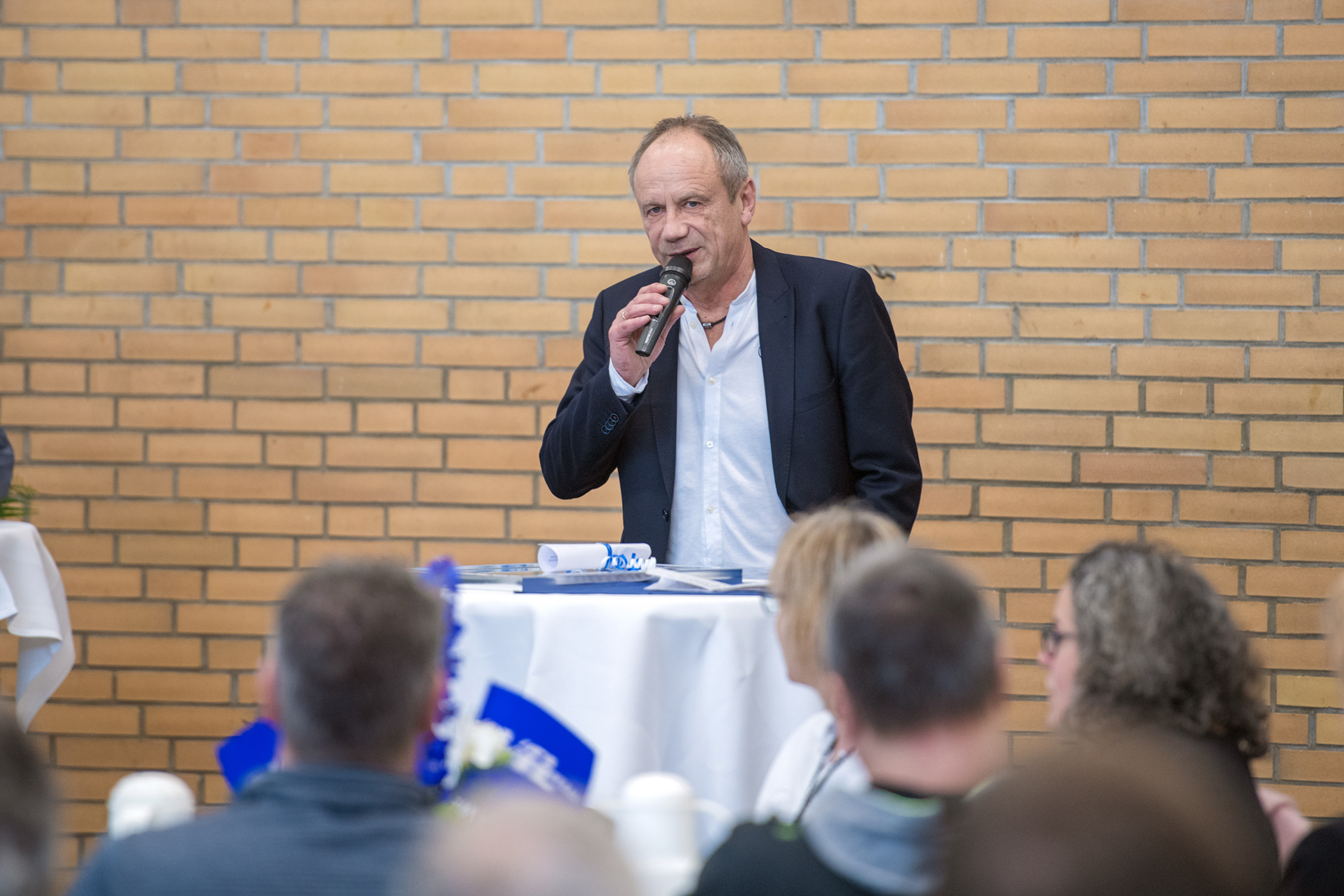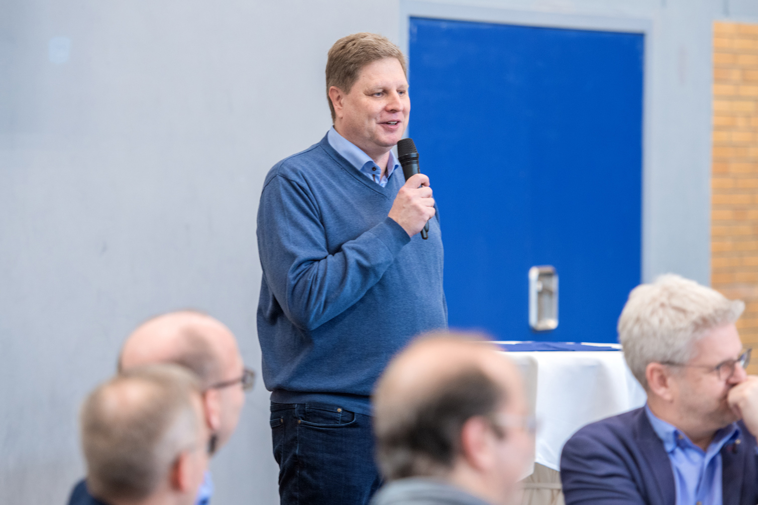 Vereinspräsident Carsten Brokelmann spricht die ersten Grußworte und bedankt sich herzlich für das Engagement aller VfL'erinnen und VfL'er. Außerdem stellt er die neue sportliche Leitung des Breitensports, Maike Stephan und Hendrik Lukas, vor.