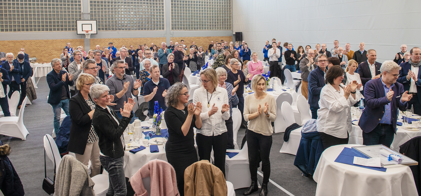 Meist nur am Telefon oder per E-Mail in Kontakt, hatten die Ehrenamtlichen in diesem festlichen Rahmen die Gelegenheit ihre Ansprechpartner aus der Vereinsverwaltung persönlich kennenzulernen. Präsident Carsten Brokelmann nutzte die Gunst der Stunde und stellte die Geschäftsstelle vor.