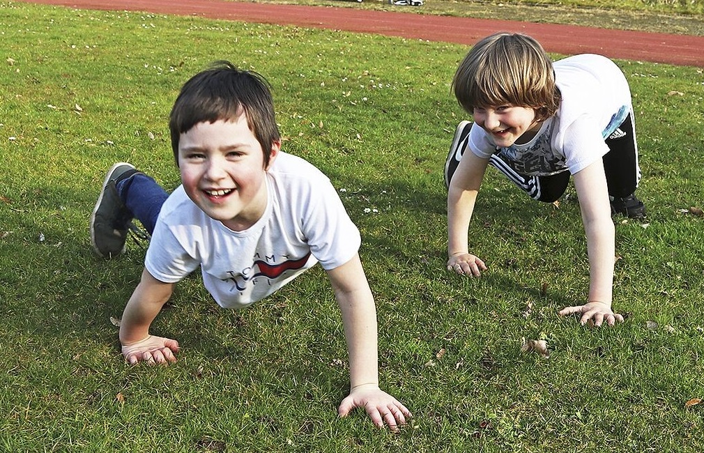 „Gleich werden wir die kleinen Flummis noch etwas fordern", sagt Lukas und klatscht in die Hände: „Jetzt ist Freestyle angesagt. Alle geben noch mal richtig Gas." Das lassen sich Mia und Matthäus nicht zweimal sagen. Die zwei Erstklässler kriechen mal im Krebsgang, hüpfen dann wild herum und probieren sich im Radschlagen.